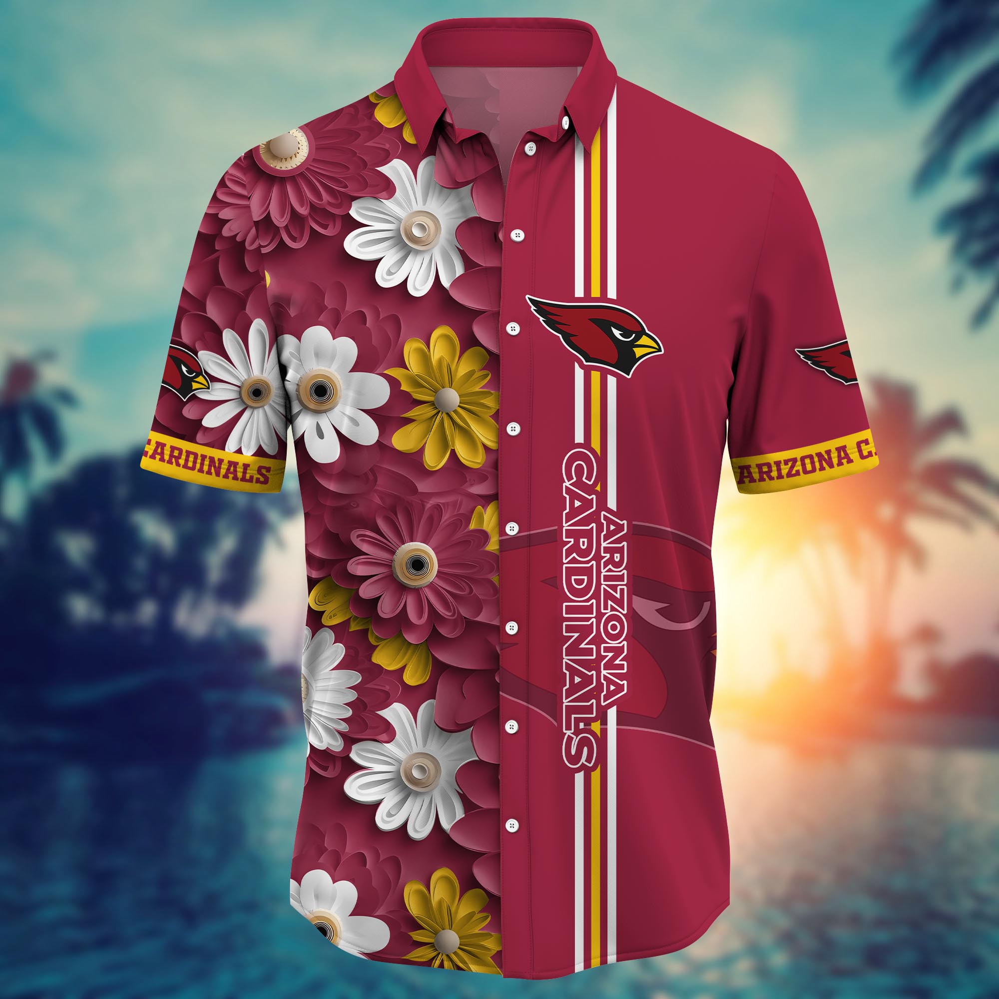 Arizona Cardinals Daisy Stripe Hawaiian Shirt