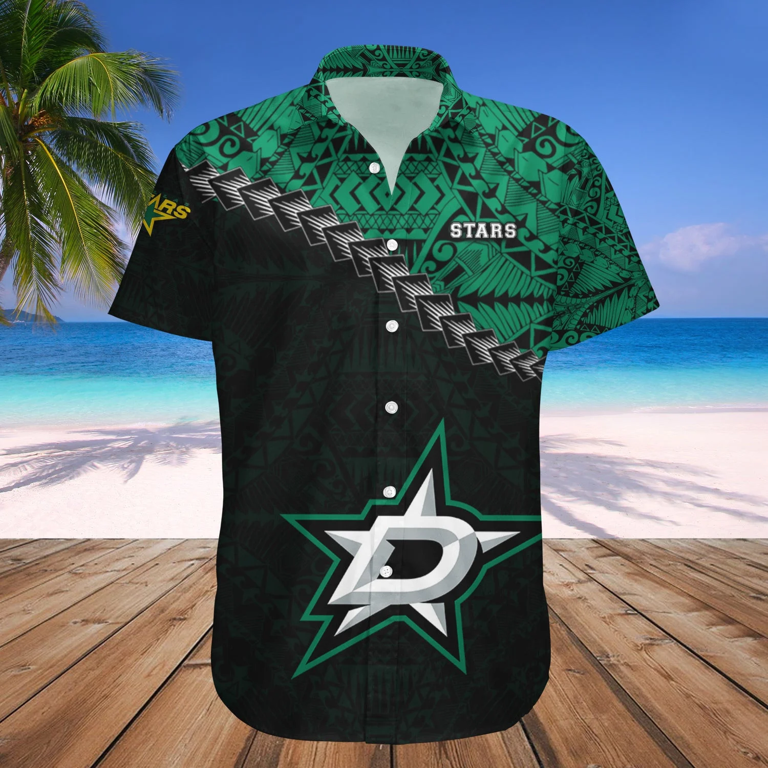 Dallas Stars Tribal Pattern Hawaiian Shirt