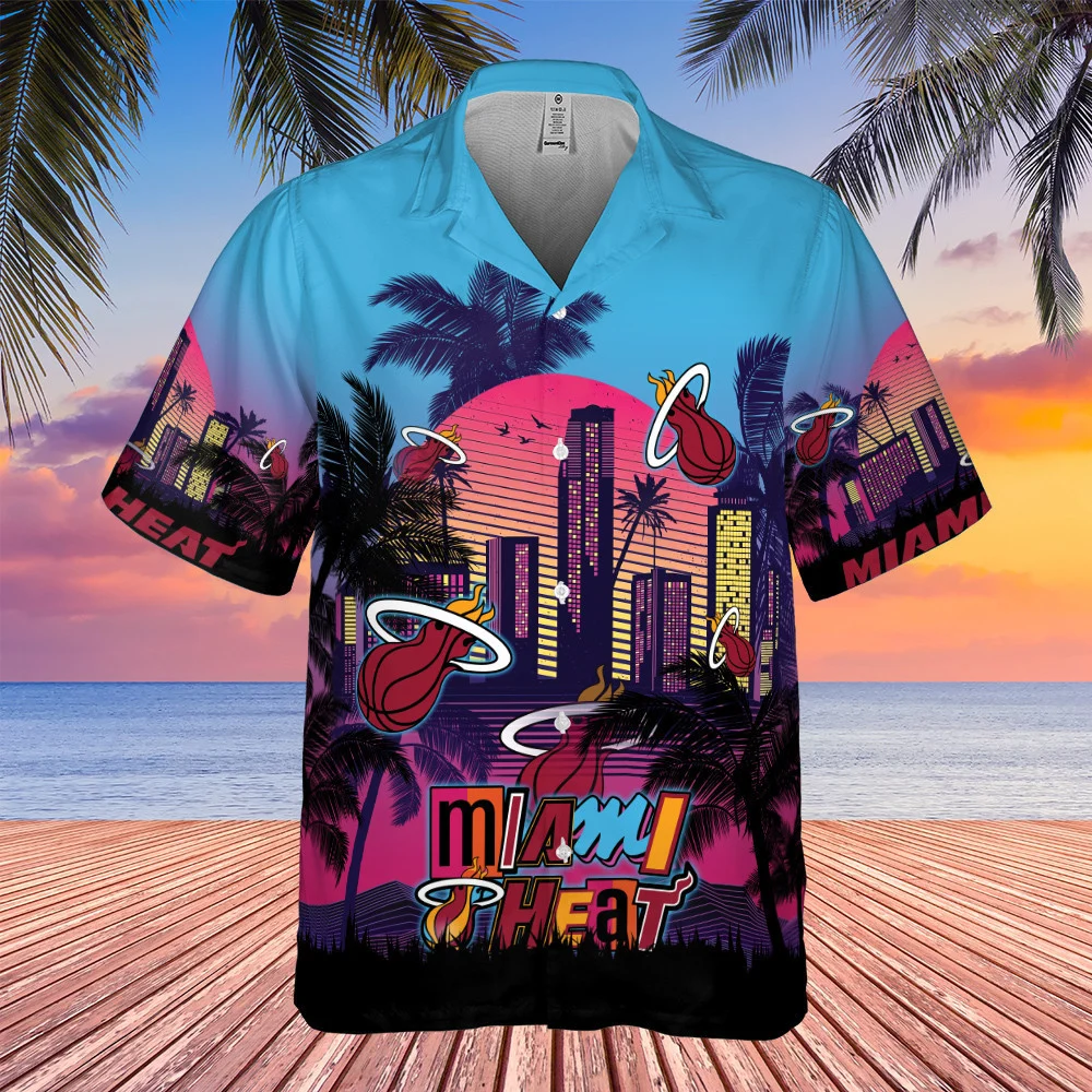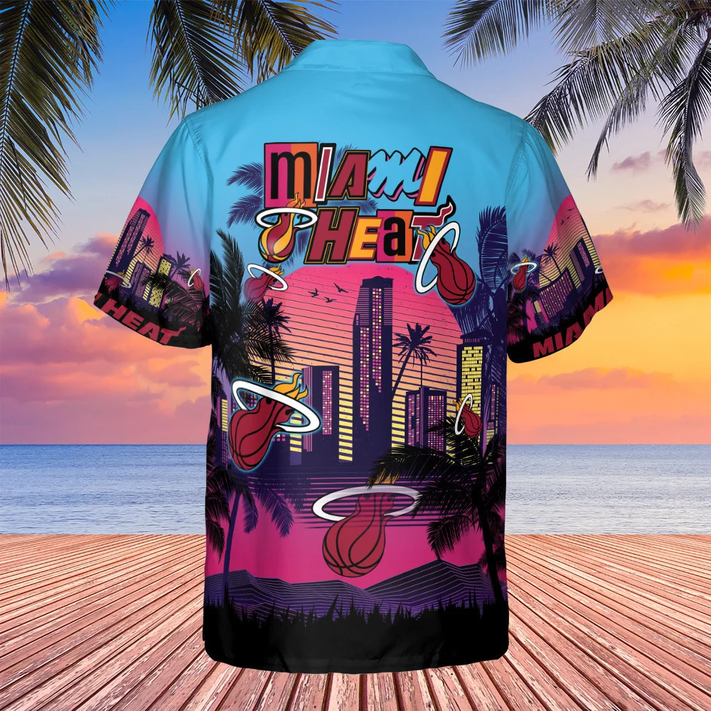 Miami Heat Neon Skyline Hawaiian Shirt